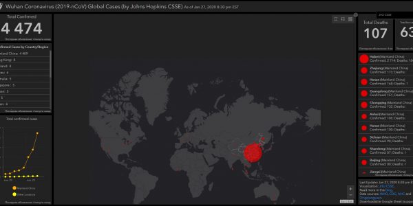 Карта, составленная исследователями из Университета Джона Хопкинса, отслеживает и визуализирует отчеты о вспышке, используя данные Центров по контролю и профилактике заболеваний, Всемирной организации здравоохранения, CDC Китая и других источников с картографированием географической информационной системы.
