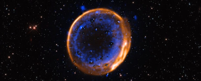 Астрономы, работающие с очень большим телескопом Европейской обсерватории (ESO) (VLT), обнаружили, что древняя сверхновая взорвалась в два раза, как тип 1A. Остаток сверхновой называется SNR 0509-67.5, и он находится примерно в 160 000 световых лет в большом магелланическом облаке (LMC).