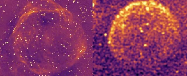 В астрономии яркости поверхности -это мера, которая говорит нам, насколько легко видимый объект. Необыкновенная чувствительность Meerkat и Askap теперь раскрывает новую «Низкому яркости вселенной» к радиоастрономам. src = «https: //www.sciencealert.comhttps: //images.theconversation.com/files/648791/original/file- 20250213-17-3jg5ar.png? Ixlib = rb-4.1.0 & rect = 9%2C417%2C1260%2C785 & Q = 45 & auto = format & w = 754 & fit = clip » Загрузка = «ленивый»> Некоторые из объектов, захваченных AskAp. (Предоставил автор) -впечатляющий новый радио-атлас, который будет использоваться в будущие десятилетия. Чему они ученые. (Автор предоставлен) Они входят в один из последних этапов звездного жизненного цикла, став звездой Вольф-Райе. Они начинают расти и пульсируют, проливая свои внешние слои, которые могут образовывать яркие туманные структуры вокруг звезды. Эта сфера звездного детрита показывает себя как круг. (Автор предоставлен) Когда большая звезда наконец -то исчерпает топливо, она больше не может сдерживать раздавливание гравитации. Вопрос, падающий внутрь, вызывает последний взрыв, и остатки этих насильственных звезд смерти известны как сверхновые. быть деформированным по окружающей среде с течением времени. Если одна сторона взрыва врезается в межзвездное облако, мы увидим раздавленную форму. Таким образом, почти идеальная круг в грязной вселенной-это особая находка. Этот уникальный объект никогда не был замечен ни в одной длине волны, включая видимый свет, демонстрируя невероятную способность Аскапа обнаружить новые объекты. Это дает нам возможность сделать выводы о начальном взрыве сверхновой, предоставляя редкое понимание одного из самых энергичных событий во вселенной. (Автор предоставлен) Остаток Diprotodon SuperNova показан ниже. Отсюда и название: Животное Diprotodon, одна из самых известных мегафауны Австралии, гигантская вомбат, которая жила около 25 000 лет назад. Это открытие привело к дальнейшему анализу, раскрывая большую часть истории и физику, стоящую за этим объектом. Беспокойная внутренняя структура можно рассматривать как разные части расширяющегося шлопа из раковины в занятую межзвездную среду.