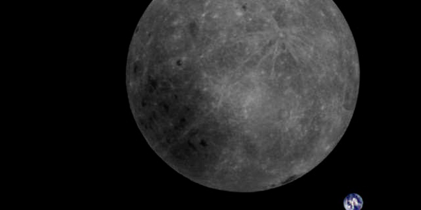 Удивительный космический снимок показывает далекую Землю за обратной стороной Луны