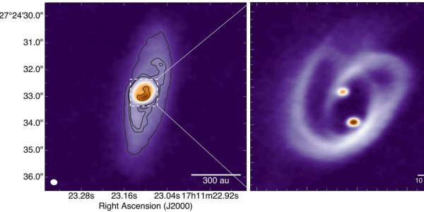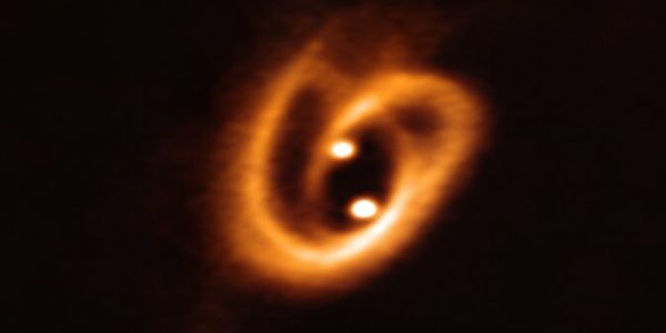 Команда оценивает, что материал попадает в двойную систему со скоростью около 0,01 массы Юпитера в год, хотя одна из звезд является более массивной и поэтому с большей скоростью отрывает материал от своего диска — вы можете увидеть это как более яркую область к нижней части изображения выше.